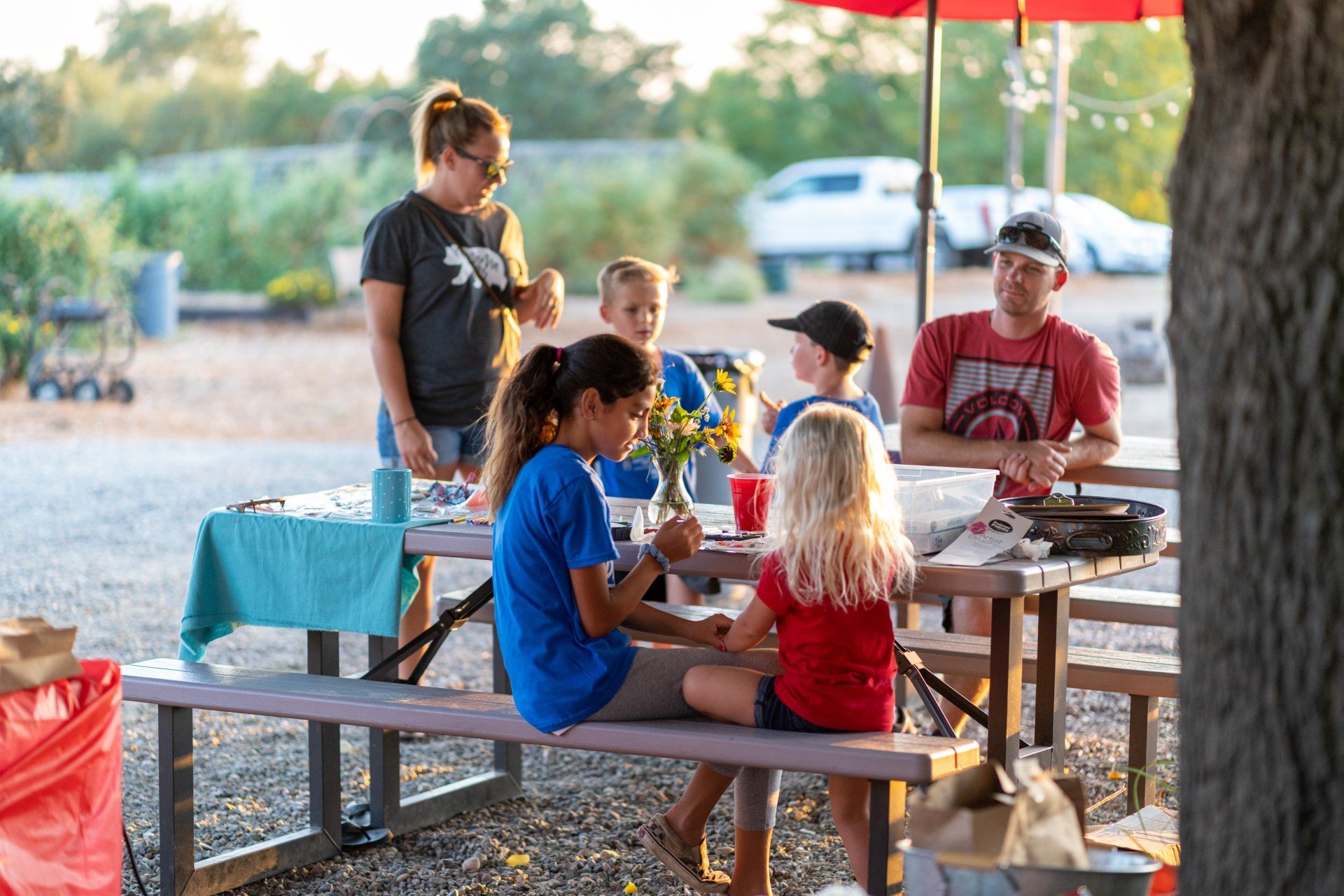 We open the pumpkin farm to anyone and set up stations to decorate, take pictures, and have their face painted.